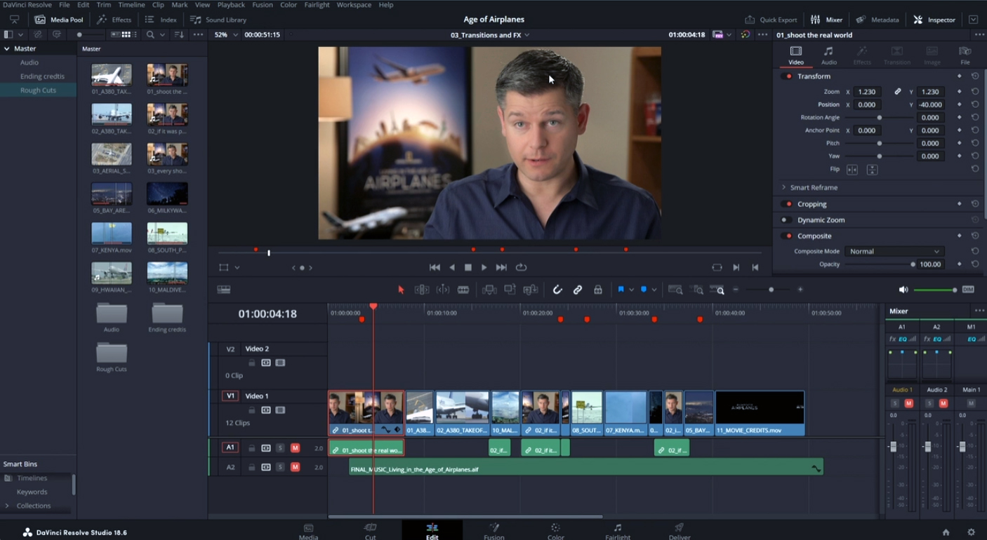 • Compositor y motion graphics con Fusion (VFX básicos, grafismo)