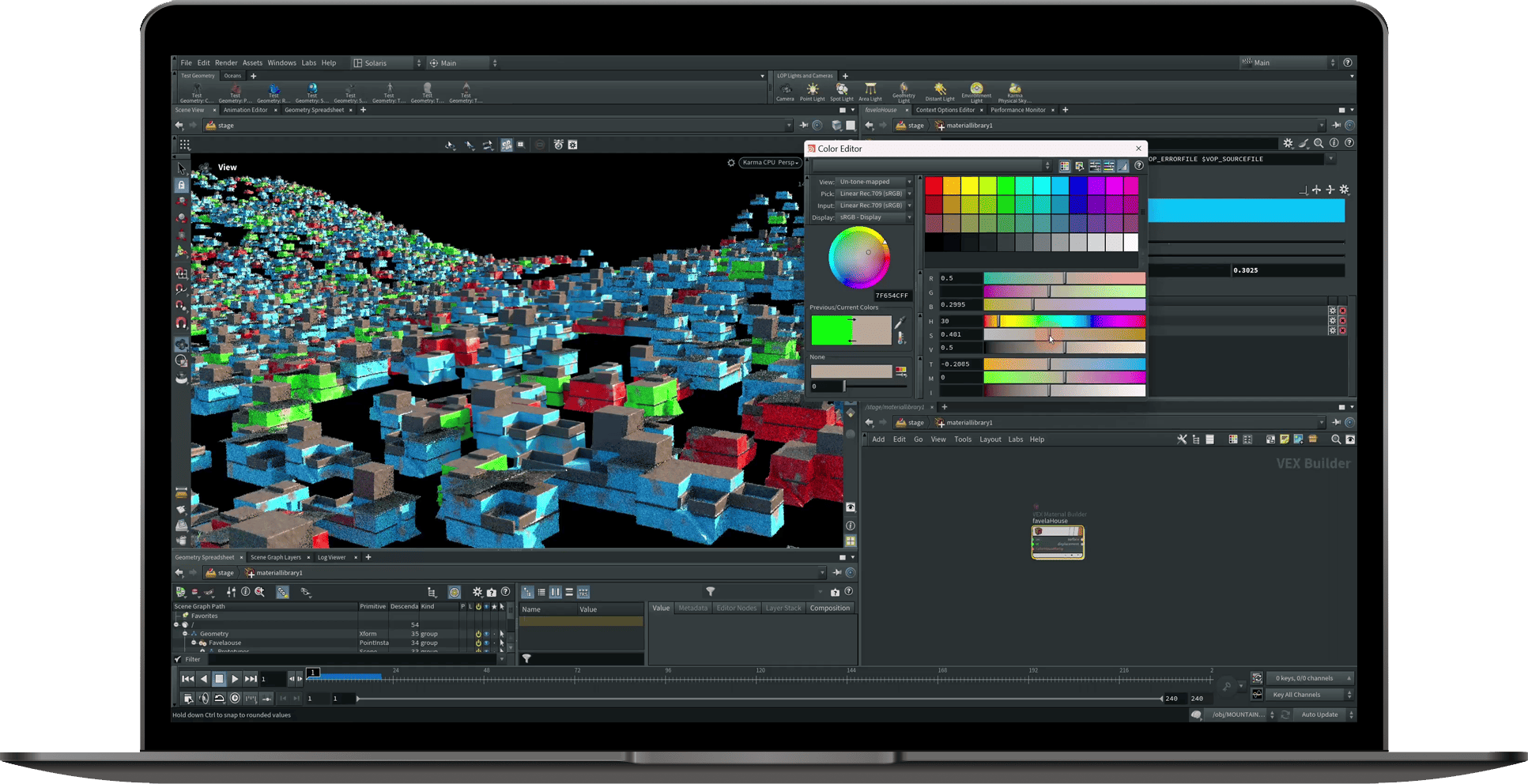 - Integración de lenguajes de programación como VEX para ampliar las capacidades de Houdini.