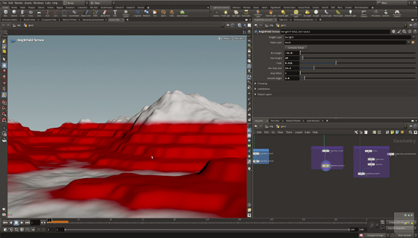 Creación de heightfields y entornos mediante VDB, análisis y creación mediante ruidos VDB, así como suelos complejos combinando VDB y Heightfield.